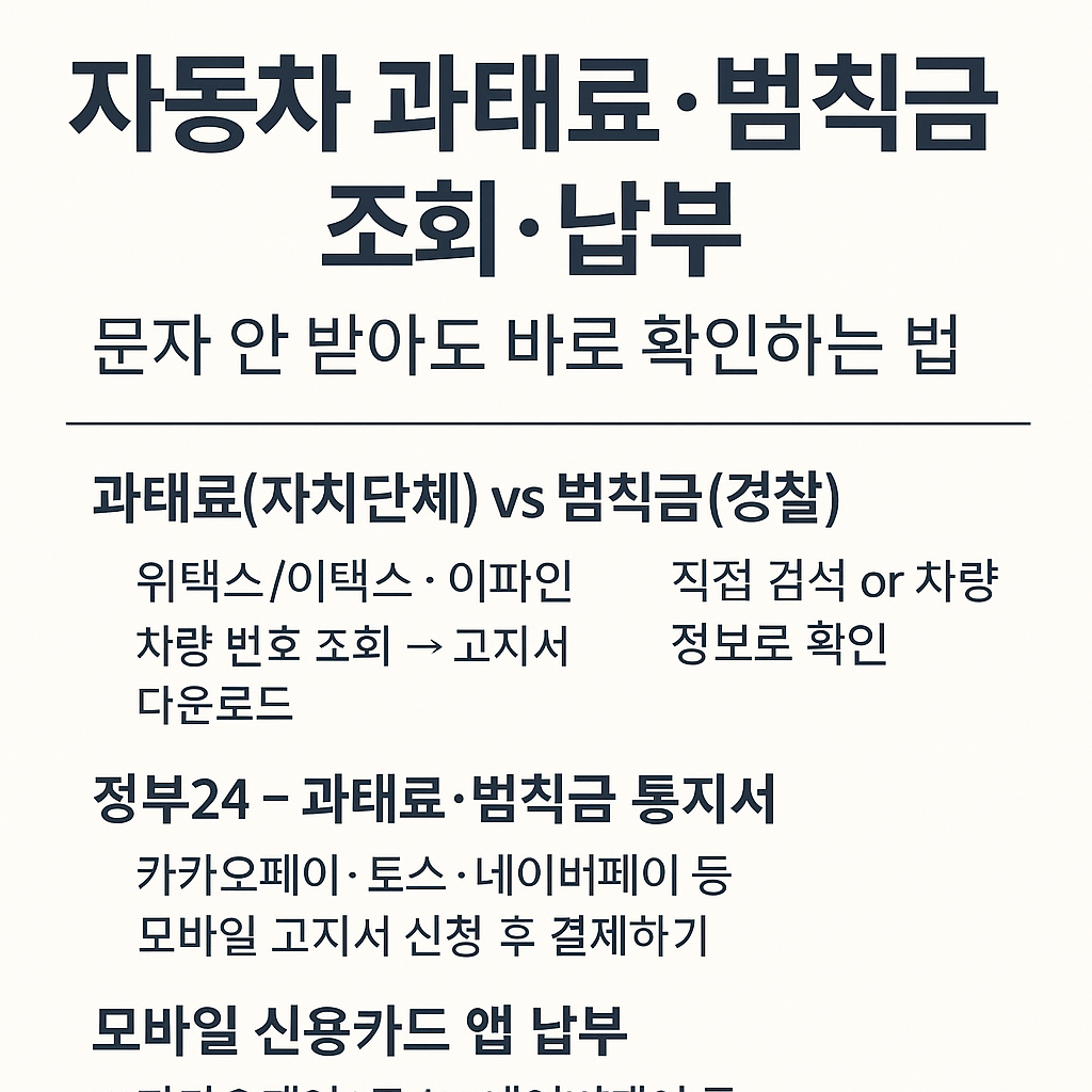 | 자동차 과태료·범칙금 조회·납부 — 문자 미수신 시 빠르게 확인하는 방법 (0) | 2025.10.19 |